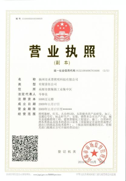 扬州市禾普照明科技有限公司网站由中国电力装备招标网制做维护。内容真实性及解释权归扬州市禾普照明科技有限公司负责。