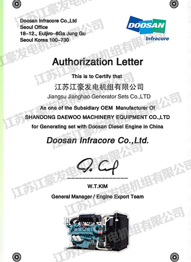 斗山(DOOSAN)OEM授权书 发布时间: 2017-06-12 17:18:07 发布网站: 中国电力装备招标网