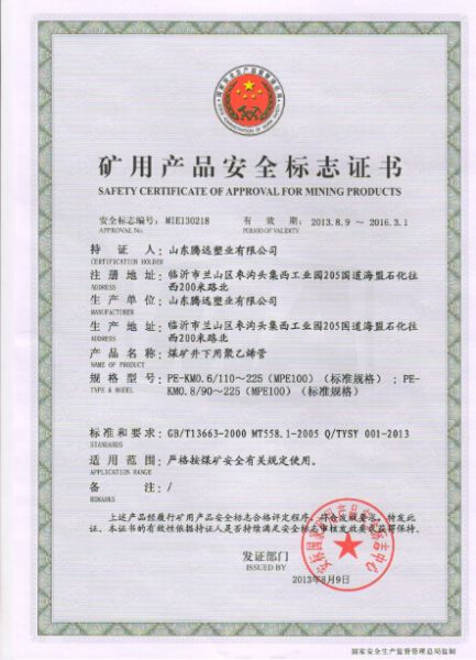 PE给水管材、PE燃气管材及PE阻燃、抗静电矿用管材、PE地源热泵管材、PE虹吸排水管材、PERT地暖管材以及配套PE给水管件等